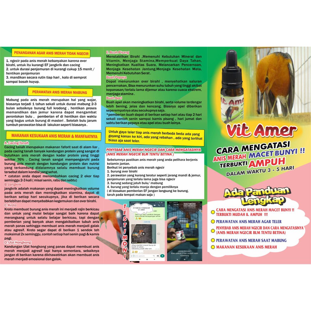 Cara Mengatasi Anis Merah Macet Bunyi. Langkah awal yang harus kita telusuri adalah faktor penyebab yang mengakibatkan anis merah menjadi macet bunyi. Nutrobird kenari obat burung kenari macet bunyi vitamin kenari birahi. Salah satu penyebab anis merah macet bunyi adalah stres dan cara mengatasi anis merah macet bunyi bisa dg pola makan dalam merawat anis merah. Setelah sudah diperas, campurkan dengan kroto segar dan racikan siap untuk . Penyebab anis merah macet bunyi · 2.